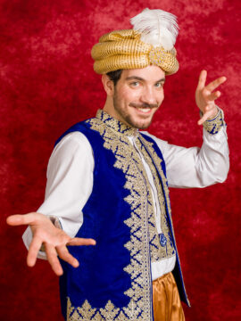 in ausgewählten Szenen auf die Bühne und spielen mit. Sie bekommen Accessoires wie Hüte, Brillen und Kronen, um in die verschiedensten Rollen zu schlüpfen. Ein lebendiges und interaktives Theaterspiel entsteht.